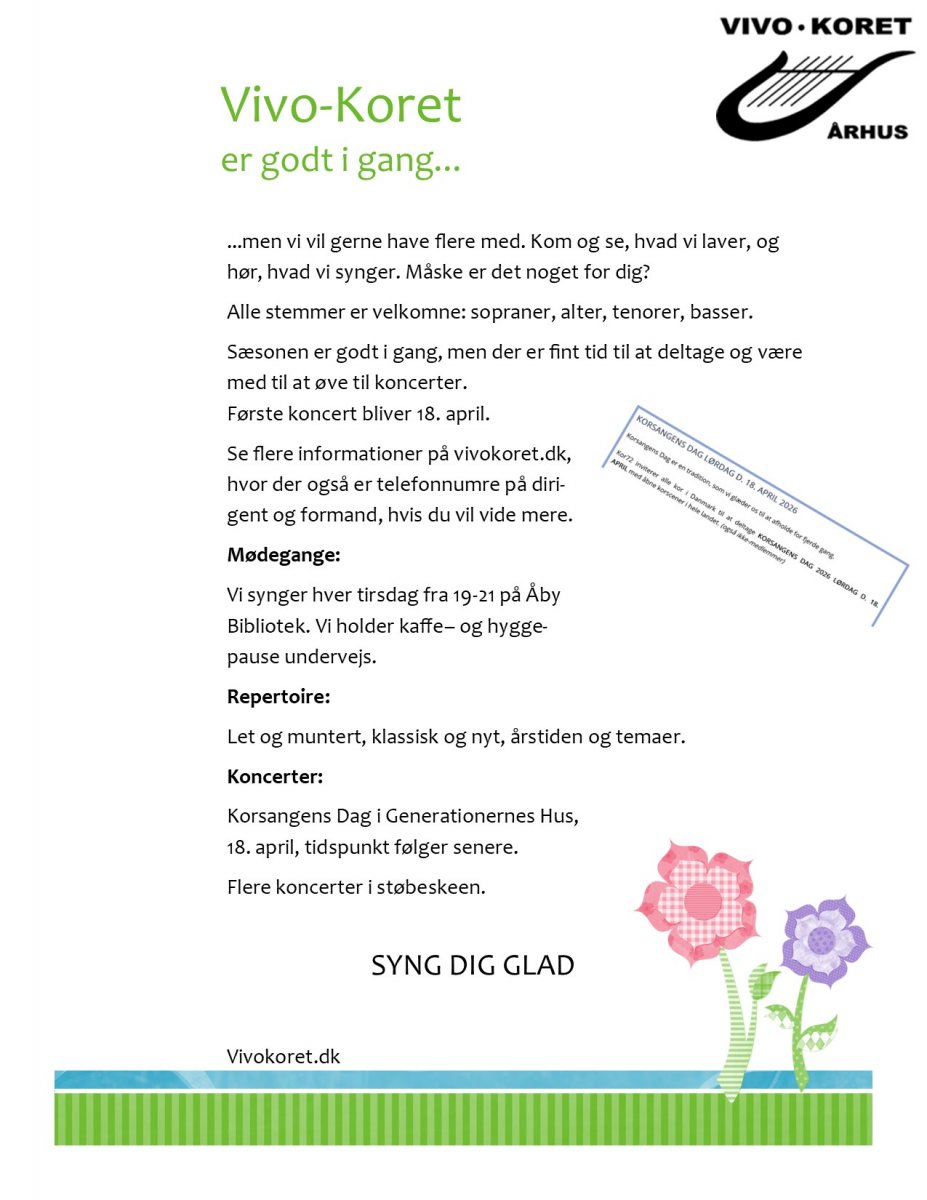 Vivo-koret Århus er et blandet kor på ca. 20 sangere. Koret synger flerstemmigt med og uden klaverledsagelse.
