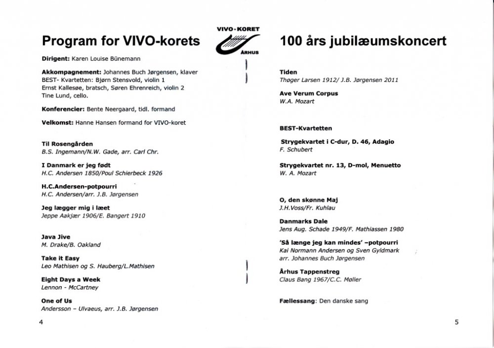 - Af korets tidligere dirigent Johannes Buch Jørgensen fik koret to nye korarrangementer,