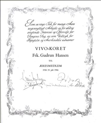 Når man har været med i koret i mere end 40 år udnævnes man til æresmedlem og modtager et diplom.