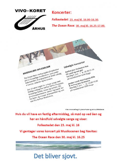 Vivo-Koret holder normalt 2 koncerter i foråret og til jul. Koret er også interesseret i at synge til forskellige arrangementer. Det koster 2500-3000 kr. for en koncert.